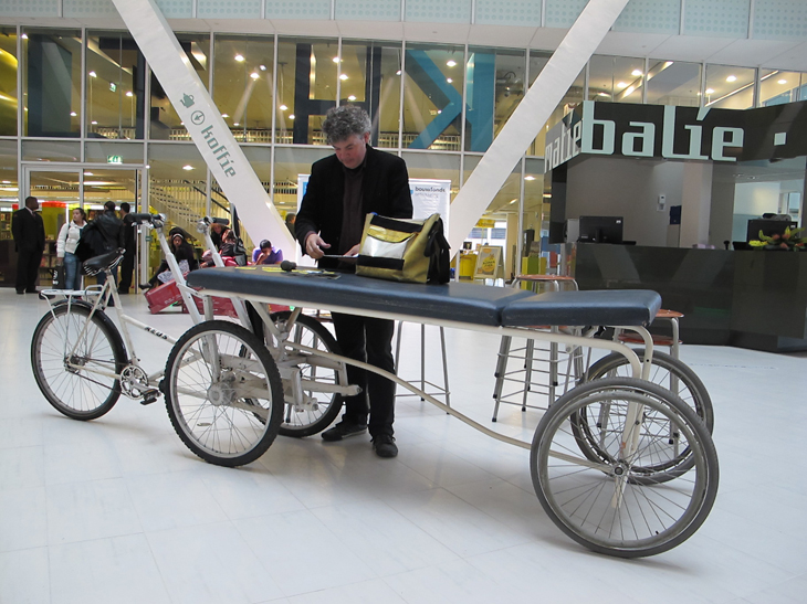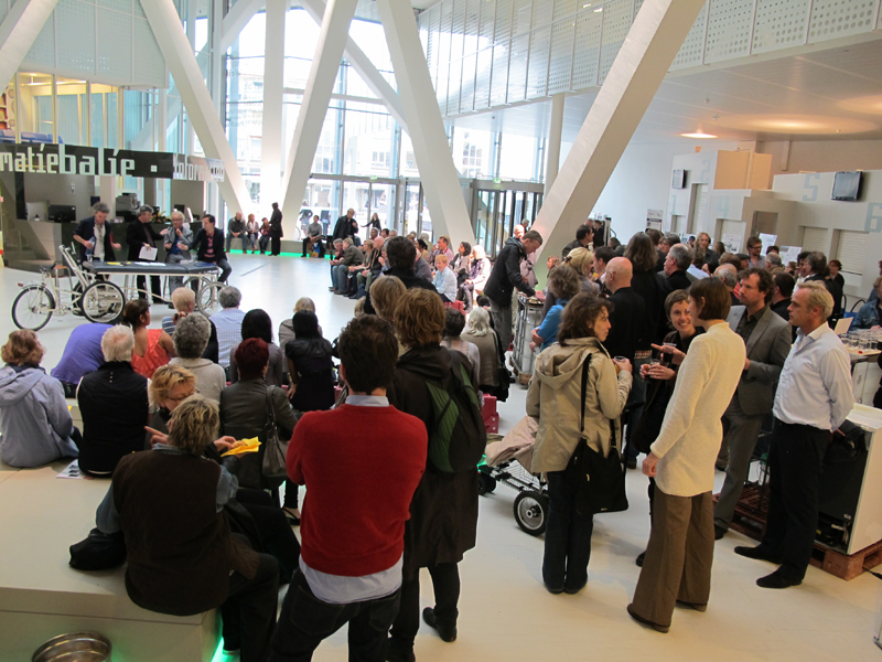 All tours start at the new city office designed by Rudy Uytenhaak, which will serve as the information center for the event. Program booklets will also be available here, and at 4:30 PM the Closing Event will take place. This will be held in the Do-It-Yourself Café built by Denis Oudendijk (Refunc) in the foyer. At the bar, Paul Cornelissen (Theater Dakota) will host alderman Marnix Norder (Urban Development, Housing, and Integration), architect Rudy Uytenhaak, cultural entrepreneur Tony Boxman (Villa Escamp), and architect Terry van der Heide (initiator of the 10th Day of Architecture film, which will be screened that day).