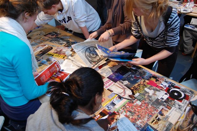 Divided into small groups, participants will create collages from images and text taken from recent national newspapers and magazines. From any given magazine, cliché images, slogans, or idealized representations can be extracted. This process will reveal how many opinions are already shaped for us by the media. The final monument will be based on these collages.