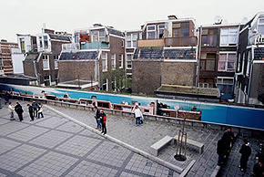 Bij de basisschool Onze Wereld in Transvaal ging het om de afscheiding tussen het schoolplein en de tuinen/achtergevels van de woningen er naast. Het was een bescheiden opdracht waarvoor beeldend kunstenaar en vormgever Evelien van Vugt een 32-meter lange aluminium schutting van 2 meter hoog ontwierp met daarop gemonteerd een foto van de bovenste verdieping van de achtergevels. Wanneer je op enige afstand naar de schutting kijkt, zie je een verdubbeling van de werkelijkheid. Want boven het beeld van de schutting steekt de werkelijkheid uit: het bovengedeelte van de achtergevels. Zo is is de situatie nu, maar straks als de hele straat is afgebroken en er nieuwe huizen staan, is deze schutting een herinnering aan de veelvormige detaillering die mensen in de loop van de tijd aan hun woningen construeren.