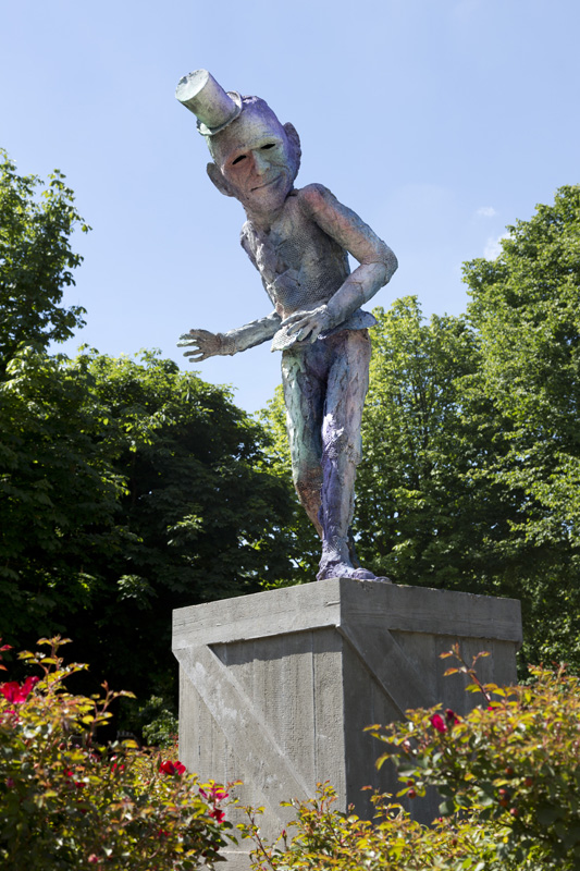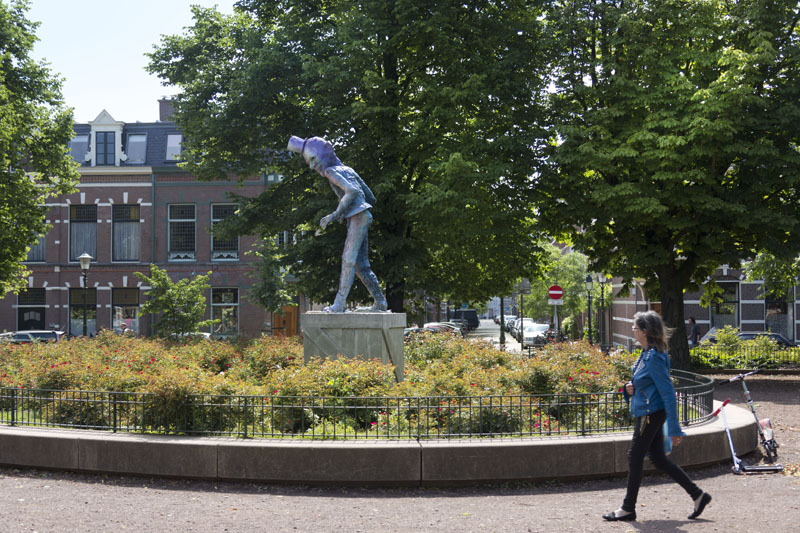 homestroom den haagprogrammakunst en de stedelijke omgevingsubsidies, documentatie en atelierskenniscentrumPublicatieseducatiepers archiefzoekenglish  Folkert de Jong ‘De Speler’ Koningsplein, Den Haag Locatie: Koningsplein, Den Haag Onthulling: zaterdag 21 juni 2014, 14 uur door wethouder Ingrid van Engelshoven, gevolgd door een feestelijke middag met kinderspelen Fotoalbum van de onthulling  Op zaterdag 21 juni 2014 werd het beeld De Speler van kunstenaar Folkert de Jong op het Koningsplein in Den Haag onthuld door Ingrid van Engelshoven (wethouder Onderwijs en Dienstverlening). Gedurende de feestelijke middag organiseerde het bewonerscomité op het plein tal van kinderspelen. Na het jarenlang pleidooi van omwonenden krijgt het Koningsplein eindelijk weer een markant kunstwerk. Spelende kinderen en ouders op bankjes zijn het nieuwe publiek van de nar van het Koningsplein.  Ooit de locatie van Horse Power, een parodie op een klassiek ruiterstandbeeld van de Israëlische kunstenaar Zadok Ben-David, stond er nu al jarenlang slechts een lege sokkel op het Koningsplein. Omwonenden wilden graag weer een nieuw kunstwerk. Men wilde een kunstenaar die het Koningsplein kon 'verbijzonderen', iemand die de identiteit van de buurt (zelf samengevat als ‘allure vs kneuterigheid') in een aansprekend beeld wist te vatten passend ook bij het karakter van het plein. Een delegatie - geformeerd in een kunstcommissie - koos er onder begeleiding van Stroom Den Haag uiteindelijk voor, om Folkert de Jong een nieuw beeld te laten maken.  In de beelden van Folkert de Jong figureren historische figuren in soms groteske taferelen. Door het gebruik van kleurige maar kwetsbare kunststoffen waren zijn beelden niet eerder permanent in de openbare ruimte te zien. Het beeld voor het Koningsplein, en het werken met meer klassieke materialen zoals brons, was voor de kunstenaar dan ook een uitdaging. De hofnar en diens ambivalente verhouding tot het hof vormde de inspiratiebron voor De Speler; de hofnar mag de koning bespotten maar is tegelijk afhankelijk van hem als werkgever. Om de trekken van De Speler naar het nu te halen keek de kunstenaar naar de koppen van acteurs als Willem Dafoe en Klaus Kinski. Het beeld neemt met z'n verstilde houding - als in het oog van de storm - een centrale plek in op het drukke plein, waar het zowel koning als nar kan spelen.  www.folkertdejong.org   PERS Konkreetnieuws, februari 2019 Den Haag Centraal, 27 juni 2014 KonKreet (wijkkrant Regentes/Valkenbos), juni 2014 if then is now, 28 mei 2014 21 Jun '14  Folkert de Jong, 'De Speler' foto: Gerrit Schreurs, courtesy Stroom Den Haag  Folkert de Jong, 'De Speler' foto: Gerrit Schreurs, courtesy Stroom Den Haag  Onthulling 'De Speler' op 21 juni 2014 foto: Eric de Vries, courtesy Stroom Den Haag