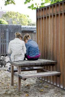 Voor een ruig stukje land op de speelplaats van De Ark bedacht Frank Halmans een installatie van gevelachtige houten schuttingen en lage hekwerken die de ruimte opnieuw indeelt en spannende doorkijkjes en speelplekken creërt. Sommige schuttingen zien eruit als blinde gevels; andere hebben architectonische elementen zoals ramen, deuren, schoorstenen of regenpijpen. De schotten lijken decorstukken; de kinderen zijn de acteurs in hun eigen set. Halmans's kunsttoepassing nodigt uit tot spelen zonder dat het ontwerp het spel dicteert.