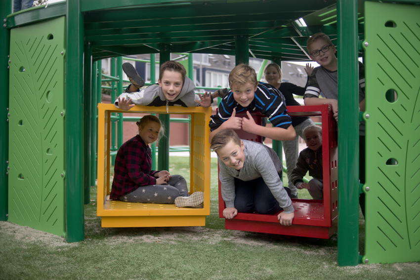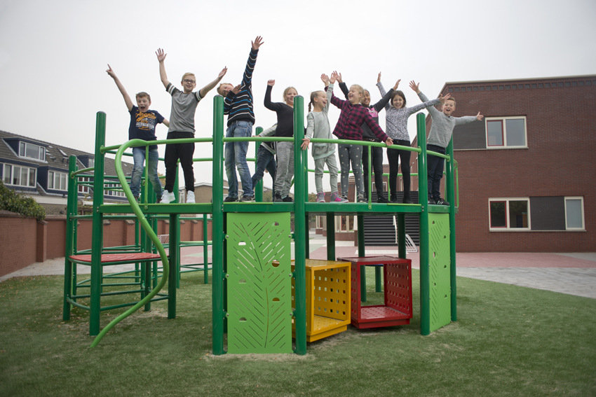 De ruimte voor een kunstopdracht is niet altijd eenvoudig. Binnen in het gebouw doen kapstokken, brandslangen en lampen de beschikbare ruimte krimpen tot een fractie van wat het op tekening lijkt. En ook de buitenruimte is vaak al vol gepland met speeltoestellen en straatmeubilair. Bij de leerlingen van de Ds. W.E. den Hertogschool bestond al lang voordat de nieuwbouw klaar was een diepe wens om een nieuw klimtoestel te krijgen. Hiervoor werd zelfs via een marathon geld ingezameld. Voor de kunstopdracht wilde de school graag iets waar de leerlingen hun energie in kwijt konden.