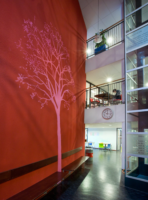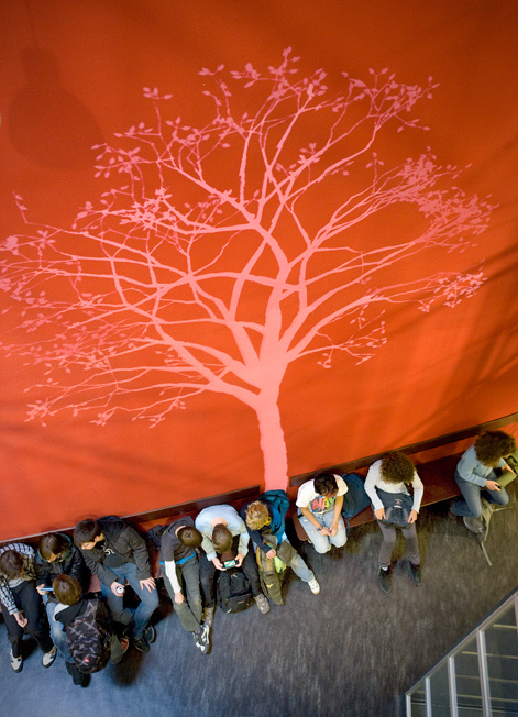 Op de wand van het Westerbeek College groeit een boom; een digitale projectie die aangestuurd wordt door de ‘echte' natuur buiten. De wind die buiten het gebouw waait wordt namelijk gemeten en naar de computer vertaald. De boom is opgebouwd uit honderden deeltjes die samen een natuurlijke kopie van de beweging van een echte boom maken. Rustig in de zomer, intens in de herfst: de boom geeft de ruimte binnen een ongeplande tijdslijn die de natuur buiten voelbaar maakt.