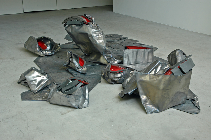 In de jaren ‘80 en ‘90 maakte de Franse kunstenaar Anita Molinero (1953) sculpturen van plastic, kartonnen dozen, vuilnisbakzakken, beton et cetera. Haar ‘straatsculpturen' onderzoeken de plaats van de mens in de hedendaagse megalopolis waar realiteit en science fiction naast elkaar lijken te bestaan.