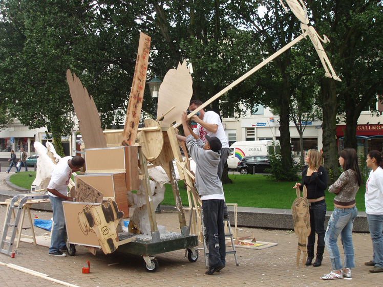Unieke workshop door professionele kunstenaars met jongeren van de Nederlandse Antillen voor jong en oud in Den Haag t.g.v. de Koninkrijksspelen 2007
