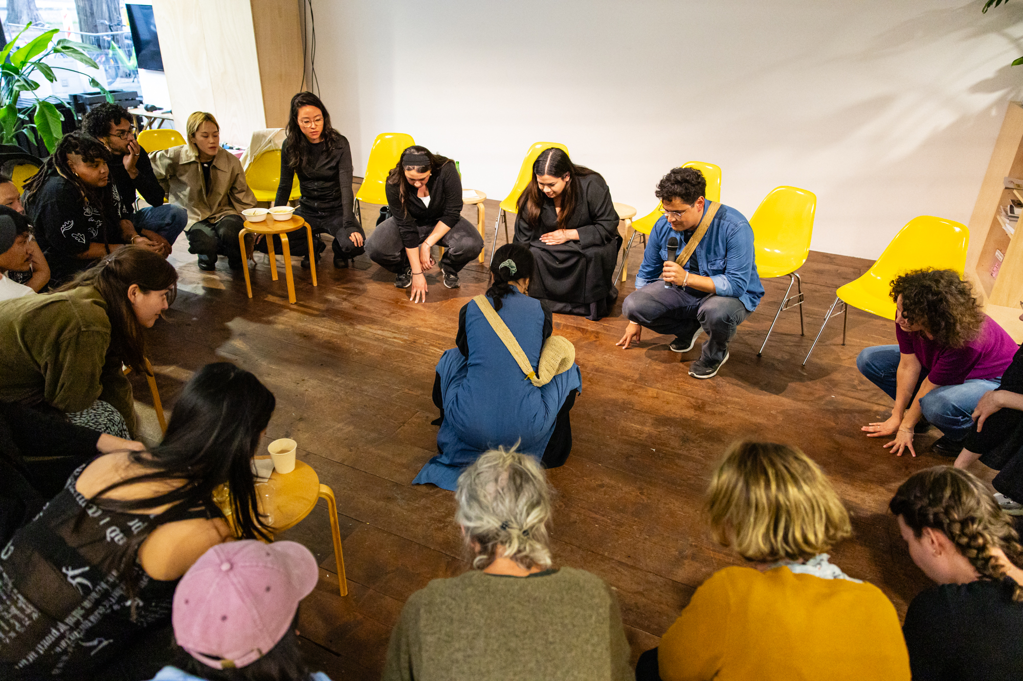 Samen met de deelnemende kunstenaars en sprekers nodigen we het publiek uit om deel te nemen aan dit programma, om samen te delen, te ervaren en te vieren. Geworteld in belichaamde en gemeenschappelijke praktijken, in manieren van voorouderlijk leven, nodigen de diverse presentaties ons uit om mee op reis te gaan door tijd en ruimte.