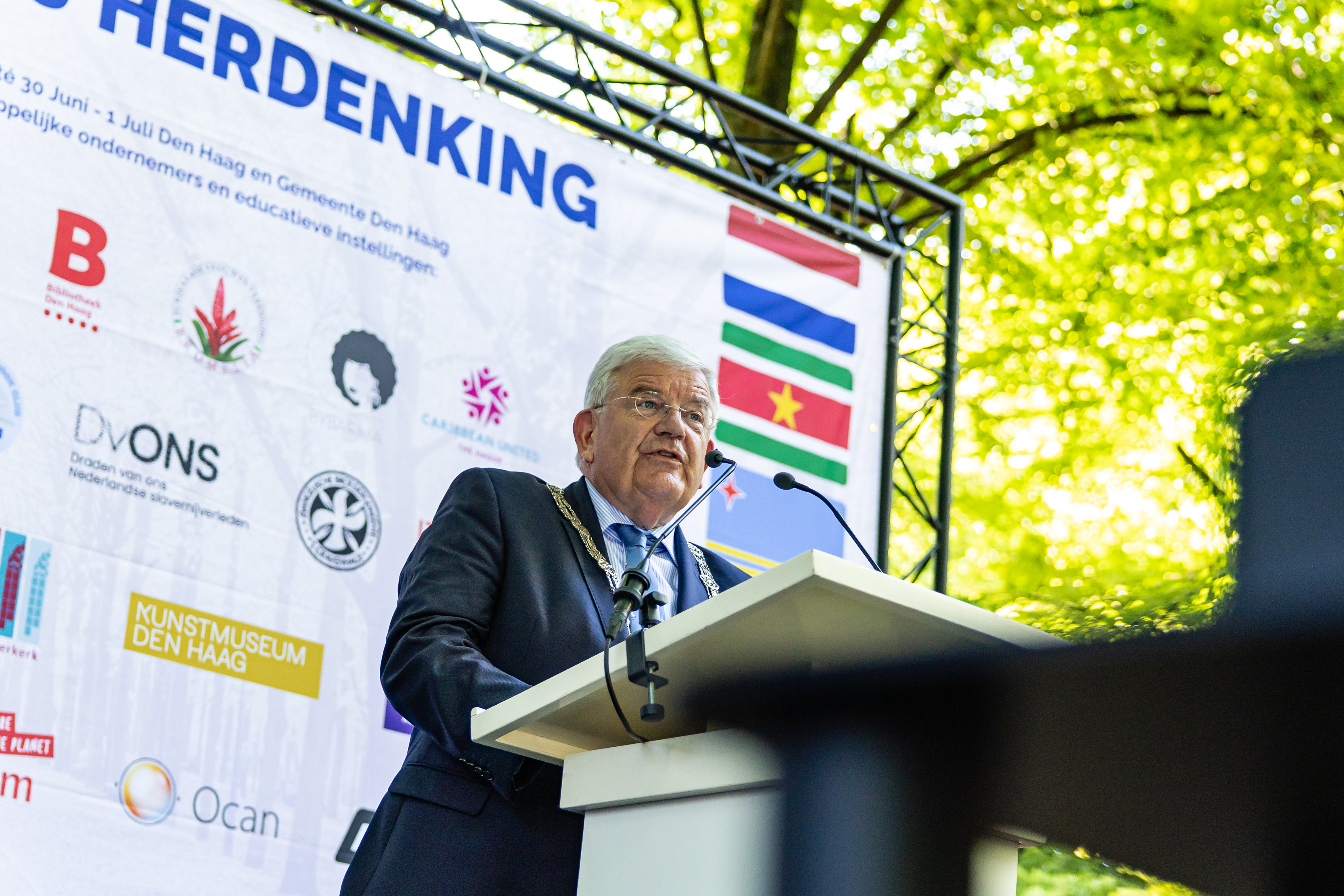 Afgelopen maandag - 30 juni j.l. - werd op het Lange Voorhout, tijdens de derde officiële Haagse slavernijherdenking, het Monument trans-Atlantisch slavernijverleden onthuld. Burgemeester Van Zanen, wethouder Vavier en Lilian Callender van het Comité 30 juni–1 juli Den Haag waren hierbij aanwezig. Het monument is een krachtig symbool dat wordt omarmd door nazaten en inwoners van de stad.