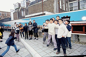Bij de basisschool Onze Wereld in Transvaal ging het om de afscheiding tussen het schoolplein en de tuinen/achtergevels van de woningen er naast. Het was een bescheiden opdracht waarvoor beeldend kunstenaar en vormgever Evelien van Vugt een 32-meter lange aluminium schutting van 2 meter hoog ontwierp met daarop gemonteerd een foto van de bovenste verdieping van de achtergevels. Wanneer je op enige afstand naar de schutting kijkt, zie je een verdubbeling van de werkelijkheid. Want boven het beeld van de schutting steekt de werkelijkheid uit: het bovengedeelte van de achtergevels. Zo is is de situatie nu, maar straks als de hele straat is afgebroken en er nieuwe huizen staan, is deze schutting een herinnering aan de veelvormige detaillering die mensen in de loop van de tijd aan hun woningen construeren.