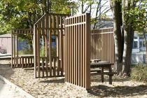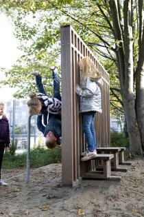 Voor een ruig stukje land op de speelplaats van De Ark bedacht Frank Halmans een installatie van gevelachtige houten schuttingen en lage hekwerken die de ruimte opnieuw indeelt en spannende doorkijkjes en speelplekken creërt. Sommige schuttingen zien eruit als blinde gevels; andere hebben architectonische elementen zoals ramen, deuren, schoorstenen of regenpijpen. De schotten lijken decorstukken; de kinderen zijn de acteurs in hun eigen set. Halmans's kunsttoepassing nodigt uit tot spelen zonder dat het ontwerp het spel dicteert.