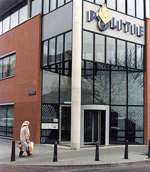 Op de wandgrote glazen pui aan de straat is een mooie scherpe vingerafdruk gezandstraald en op de ramen van de lichtstraat binnen zijn vijf oranje vingerafdrukken aangebracht, afkomstig van vijf verschillende nationaliteiten uit de wijk. Samen vormen ze de vijf vingers van een hand, die voor kleurschaduwen in het trappenhuis zorgen.