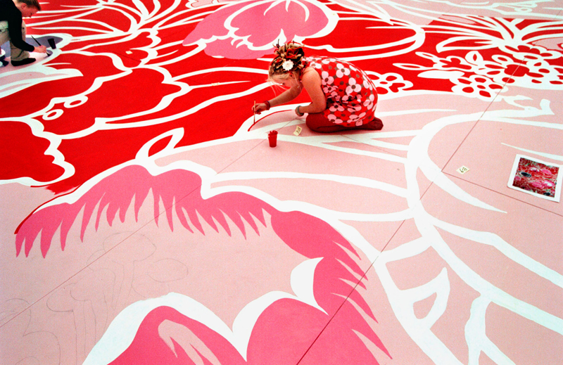 Met zijn enorme bloemenvloer creëerde Michael Lin (1964) doelbewust een functioneel kunstwerk. Het publiek mocht er overheen lopen en er diverse activiteiten op organiseren, zoals voorstellingen, recepties en zelfs tentoonstellingen. De drempelvrees voor hedendaagse kunst werd letterlijk weggenomen. De unieke locatie van het Atrium maakte het bovendien mogelijk om het indrukwekkende schilderij van bovenaf te bekijken.