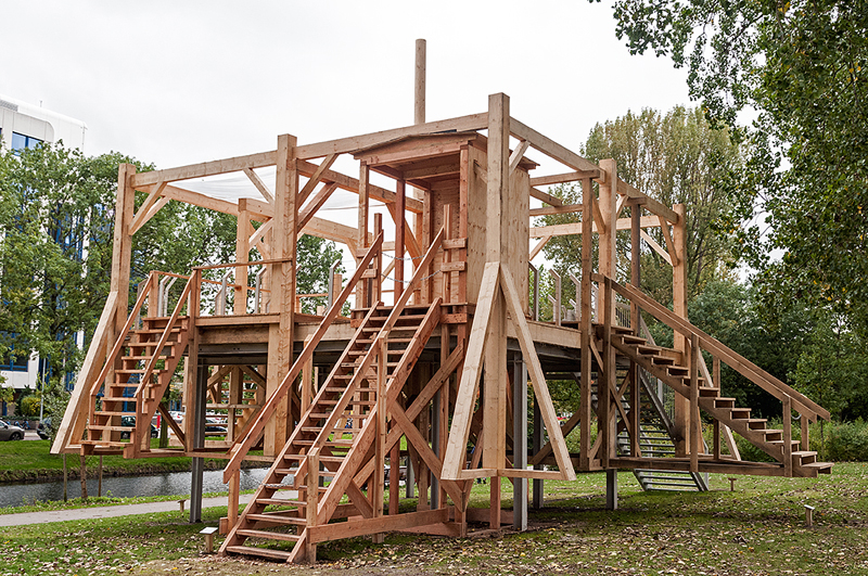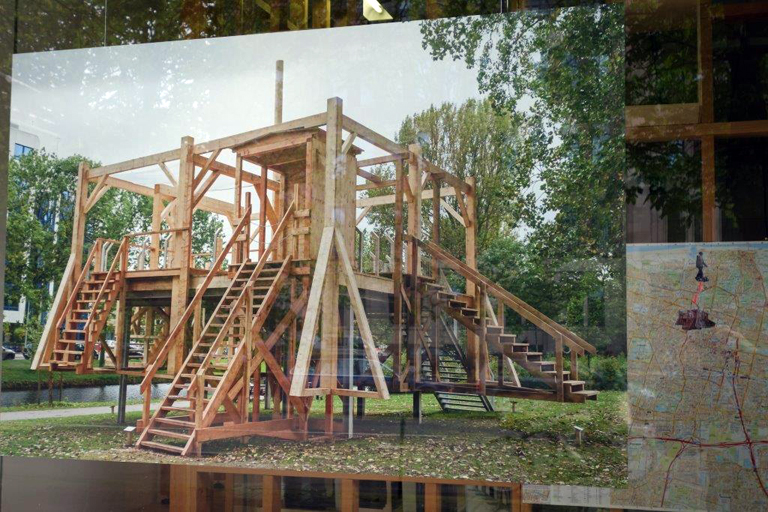 De grote aanwezigheid van instituten op het gebied van recht en veiligheid in Den Haag was de aanleiding voor Sam Durant en Stroom om Scaffold in Den Haag op te bouwen aan de President Kennedylaan in de Internationale Zone van de stad.