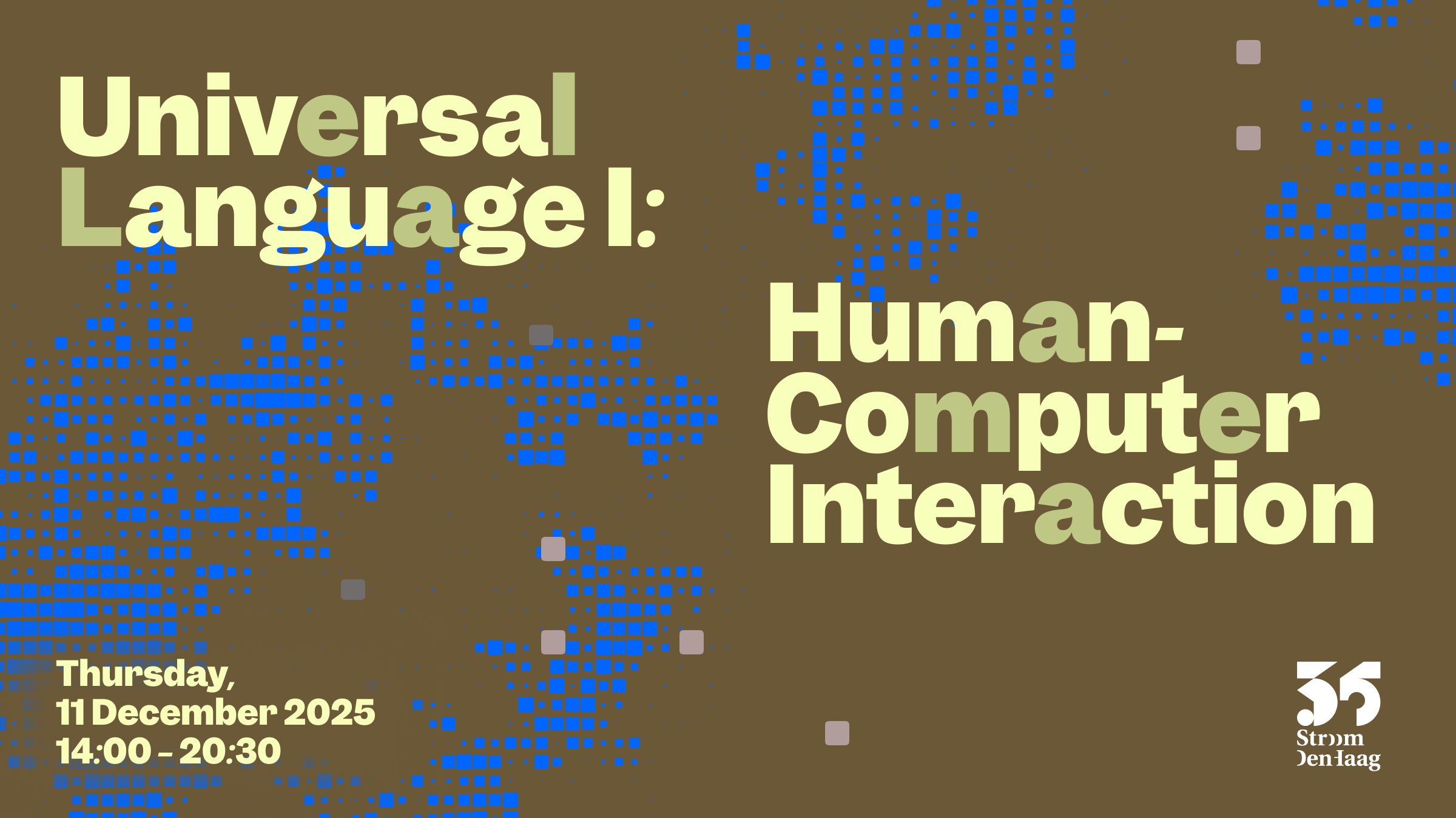 Met Human-Computer Interaction start het jaarprogramma Universal language, onderdeel van Stroom's meerjarige programmalijn Entangled Codes, waarin de rol van hedendaagse technologie wordt onderzocht in relatie tot de openbare ruimte en het maatschappelijk leven.