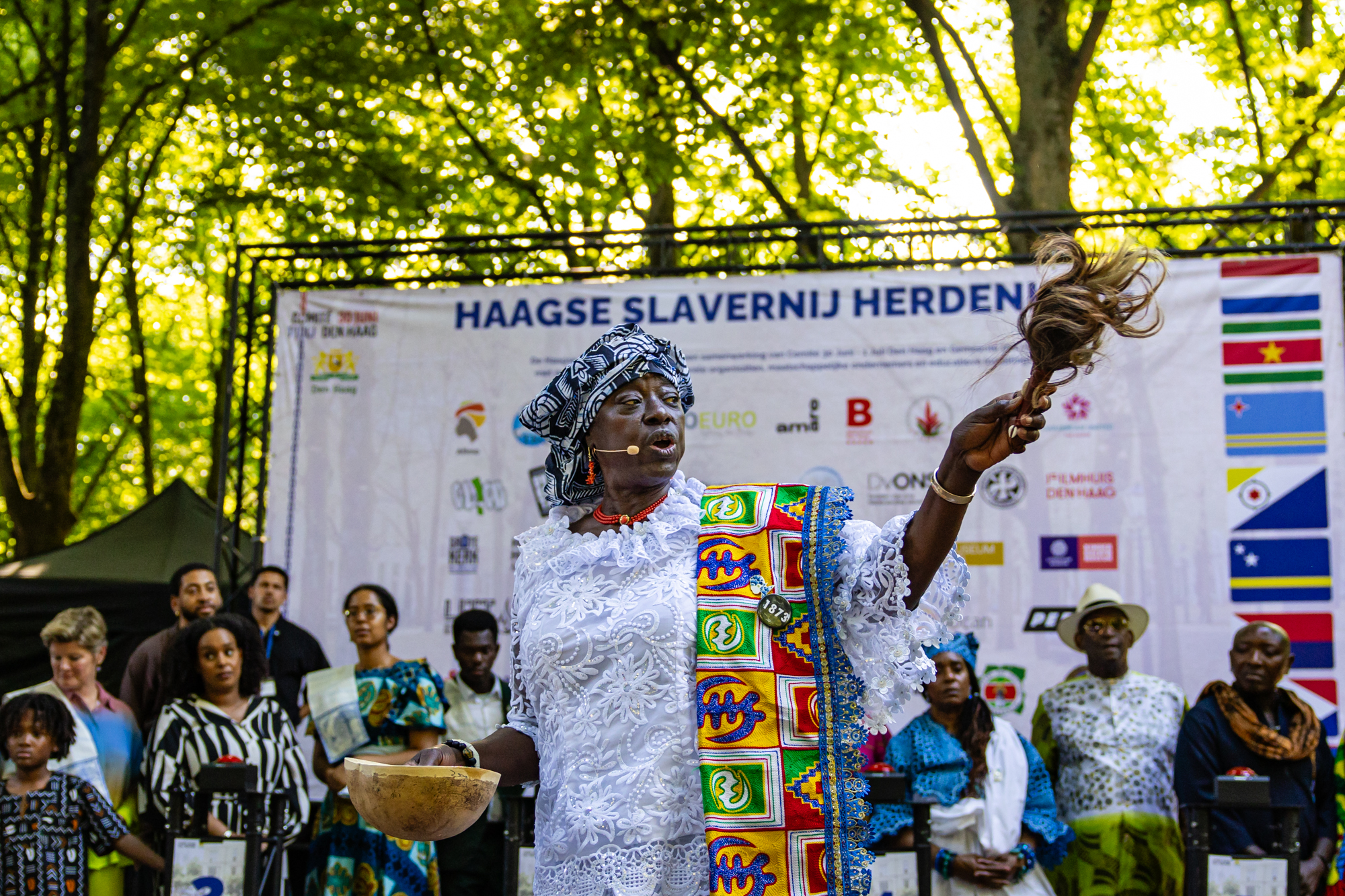 Het werk Remember Our United Beginning van kunstenaar Buhlebezwe Siwani werd feestelijk verwelkomd – gedragen door woorden van kracht, eenheid en verbinding. Met dit monument krijgt Den Haag een blijvende plek om de tot slaaf gemaakten van de trans-Atlantische slavernij te herdenken en te eren.
