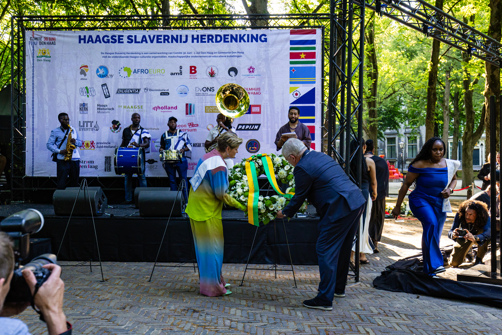 Afgelopen maandag - 30 juni j.l. - werd op het Lange Voorhout, tijdens de derde officiële Haagse slavernijherdenking, het Monument trans-Atlantisch slavernijverleden onthuld. Burgemeester Van Zanen, wethouder Vavier en Lilian Callender van het Comité 30 juni–1 juli Den Haag waren hierbij aanwezig. Het monument is een krachtig symbool dat wordt omarmd door nazaten en inwoners van de stad.